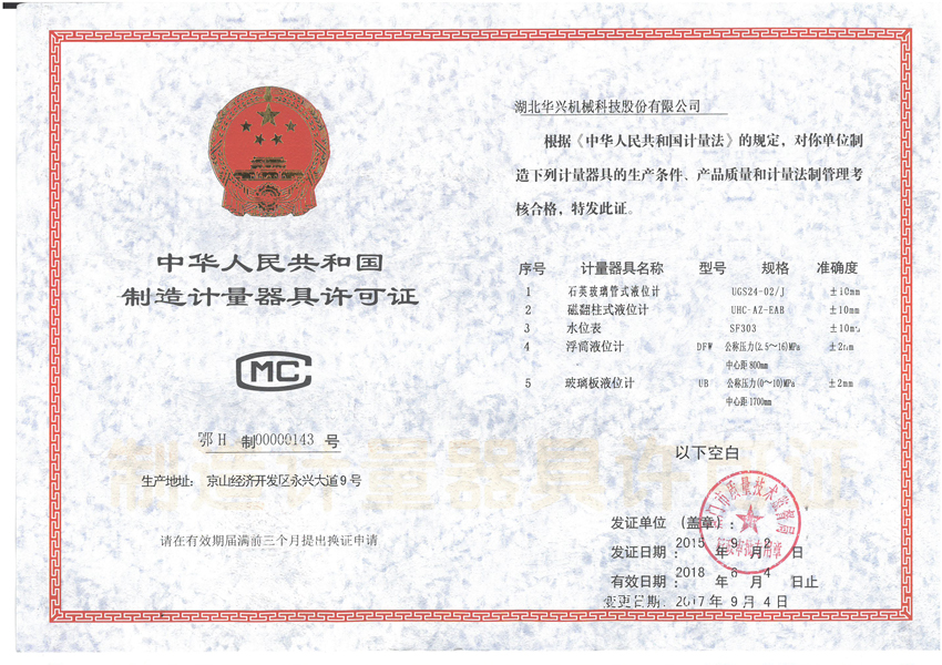 公司通過(guò)了ISO9001質(zhì)量管理體系認(rèn)證、環(huán)境管理體系認(rèn)證和職業(yè)健康安全管理體系認(rèn)證,全面實(shí)施ERP管理系統(tǒng),獲得“壓力管道元件特種制造許可證”、“建筑業(yè)企業(yè)資質(zhì)證書”、“安全生產(chǎn)許可證”等資質(zhì),是湖北省專利示范企業(yè)、湖北省高新技術(shù)企業(yè)、湖北省重合同守信用企業(yè)、誠(chéng)信納稅企業(yè)。
